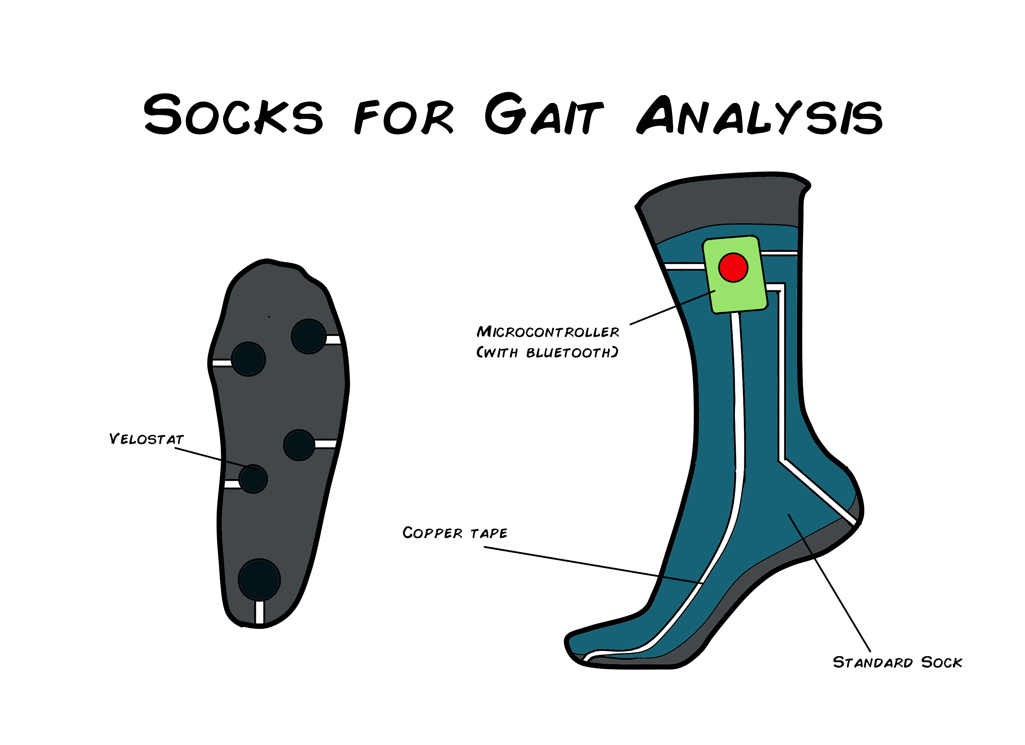 - Initial contact detection: The socks should be able to detect which part of the foot made initial contact with the ground during walking.